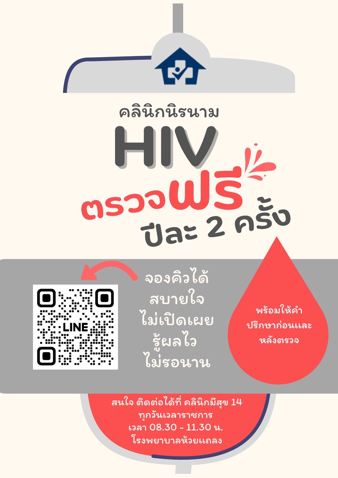 ประชาสัมพันธ์ คลินิกนิรนาม (HIV) โรงพยาบาลห้วยแถลง ตรวจฟร...