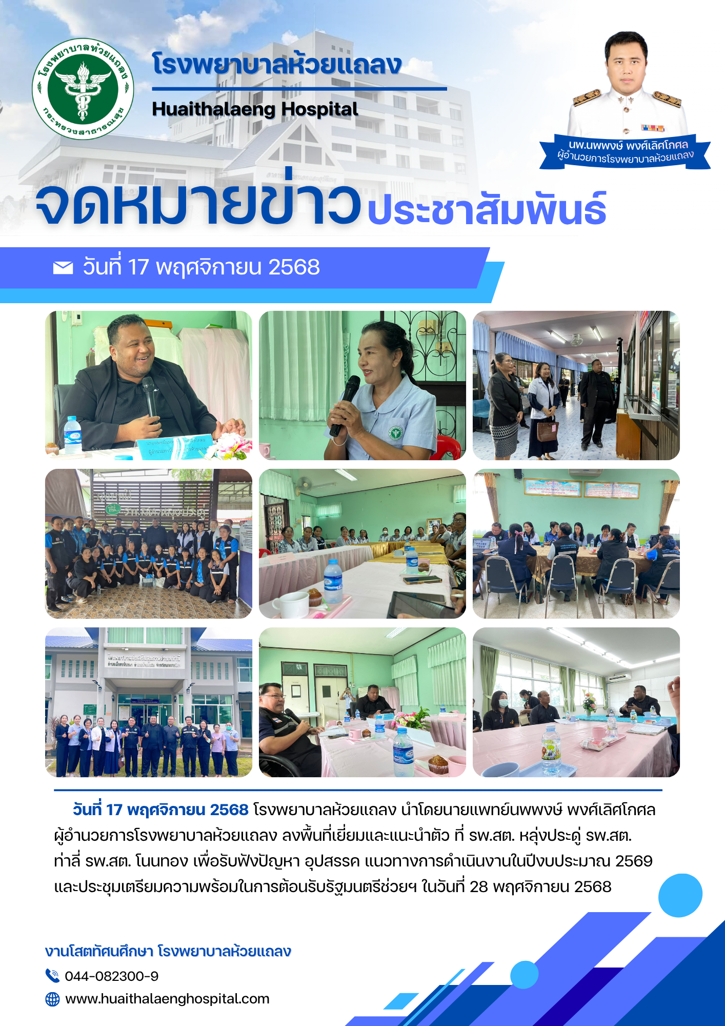 ผู้อำนวยการโรงพยาบาลห้วยแถลงลงพื้นที่เยี่ยมและแนะนำตัว ที...