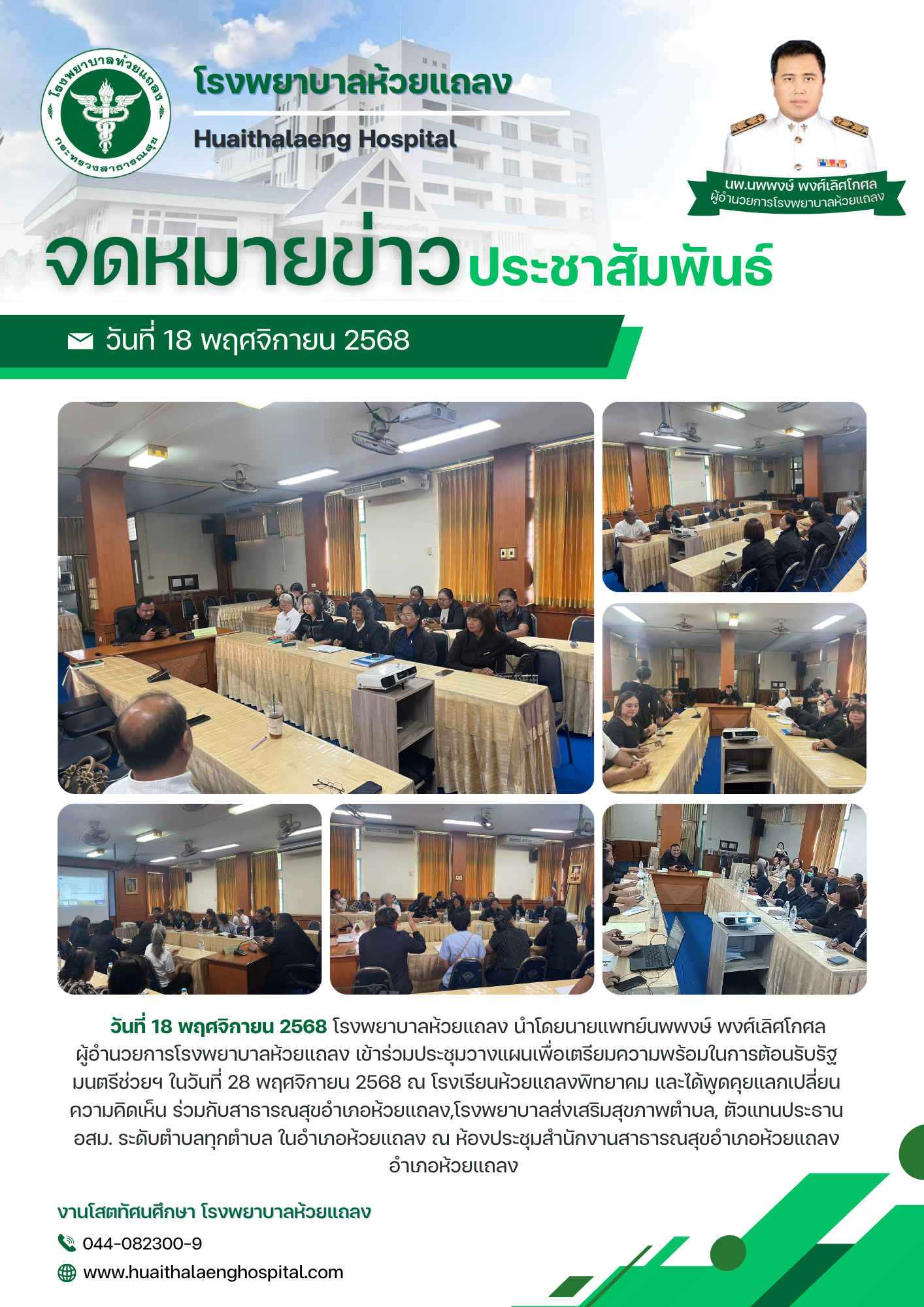 วันที่ 7 ส.ค. 2567 ณ ศูนย์พัฒนาคุณภาพชีวิตและส่งเสริมอาชีพผู้สูงอายุ องค์การบริหารส่วนตำบลห้วยแถลง ร่วมกับฝ่ายทันตกรรมโรงพยาบาลห้วยแถลง และภาคีเครือข่าย ร่วมกันดำเนินโครงการโรงเรียนผู้สูงอายุภายใต้แนวคิดการส่งเสริมกระบวนการเรียนรู้ตลอดชีวิต และให้การส่งเสริมกิจกรรมการเรียนรู้ ๘ มิติ เป็นการดำเนินงานแบบมีส่วนร่วมโดยทุกภาคส่วน “ร่วมคิด ร่วมทำ ร่วมสร้าง” โดยกลุ่มงานทันตสาธารณสุข รพ.ห้วยเเถลง ได้มีส่วนร่วมในการดำเนินงานจัดการเรียนรู้ให้ผู้สูงอายุมีความรู้ในการดูแลสุขภาพช่องปาก เพื่อการมีคุณภาพชีวิตที่ดี ซึ่งมีผู้สูงอายุเข้าร่วมโครงการจำนวน 30 คน