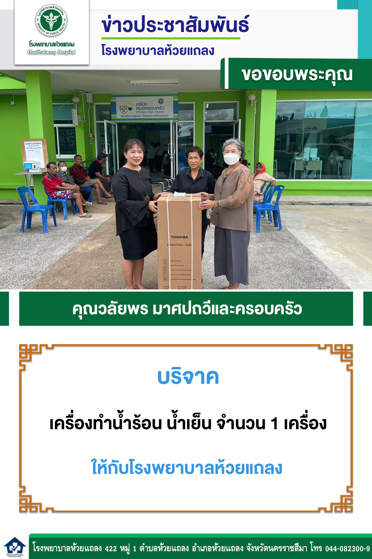 ขอขอบคุณผู้บริจาค คุณลัดดาวัลย์ บัวขาว 05 ก.ค. 2567 หมวดหมู่ : ผู้บริจาค 1,084 #โรงพยาบาลห้วยแถลง ขอขอบคุณ คุณลัดดาวัลย์ บัวขาว ร่วมบริจาคเงินสด จำนวน 2,500 บาท ให้โรงพยาบาลห้วยแถลง